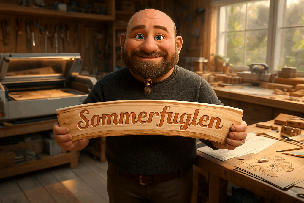 - 🦋 Sommerfuglen – laserskåret skilt til mormors magiske legehus