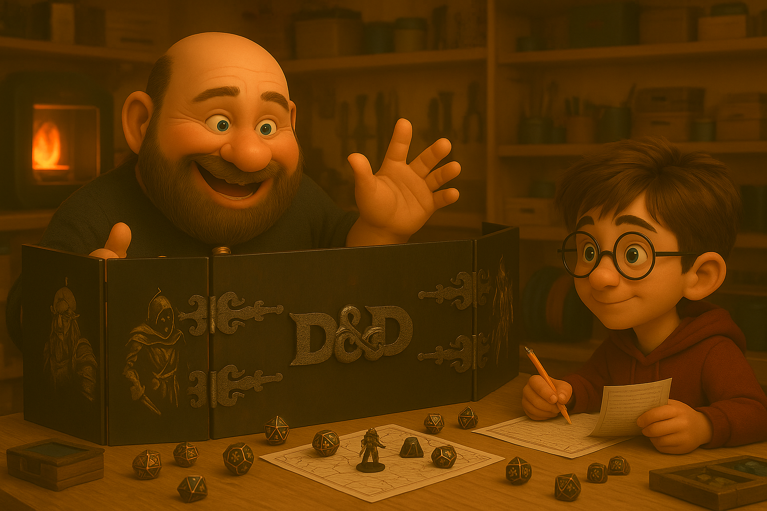 Resultatet blev en Game Master-skærm med sjæl og historie – klar til at beskytte hans hemmeligheder og skabe nye eventyr, hvor drager, helte og terninger styrer skæbnen. 🎲