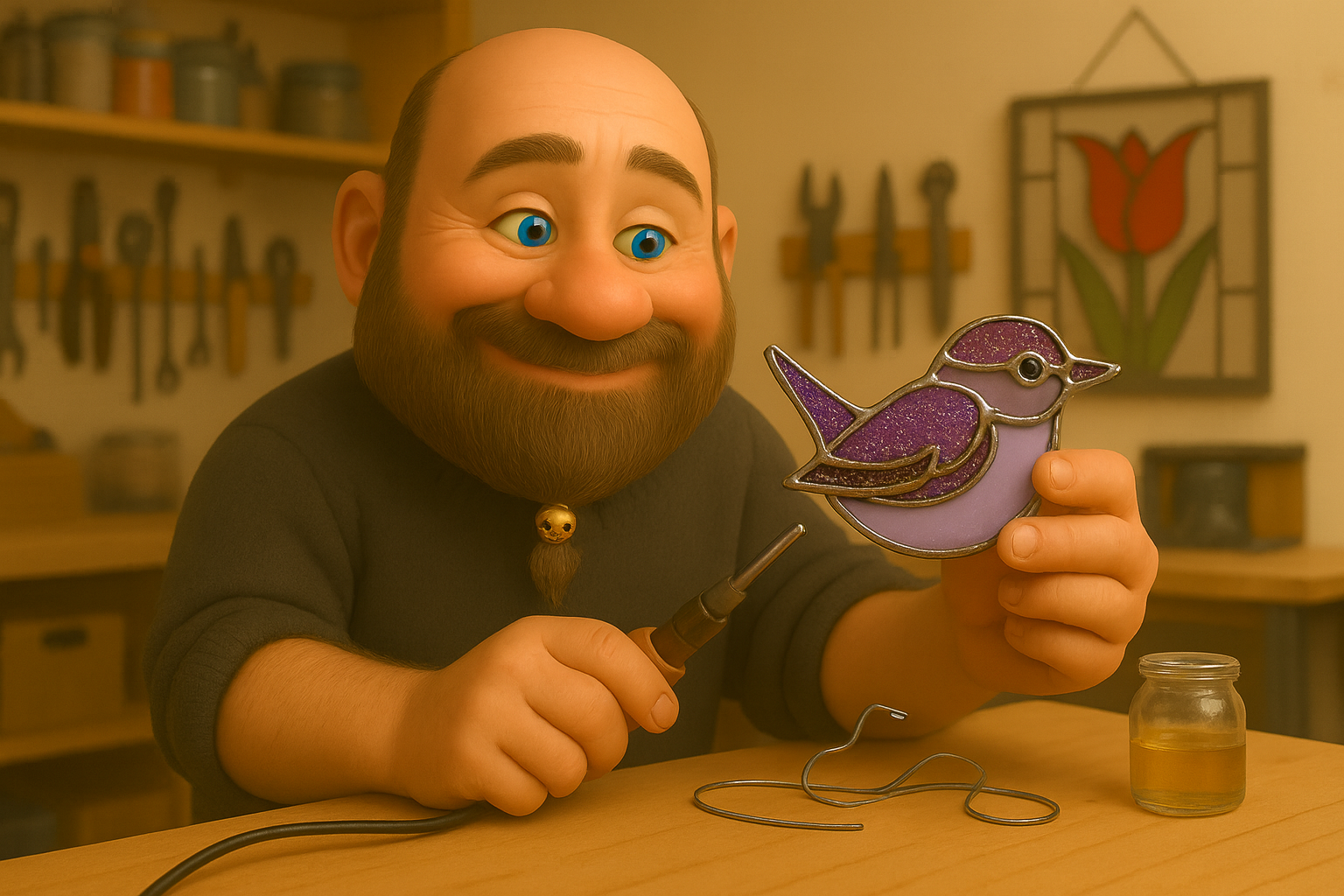 Jeg havde lĂŠnge haft lyst til at afprĂžve stained glass-teknikken, men i stedet for klassisk glas ville jeg eksperimentere med laser-cut farvet akryl, kobbertape og lodning. Ideen var at skabe smĂ„ farverige fuglefigurer, der kunne stĂ„ frit og fange lyset â som moderne, makerspace-inspireret glaskunst.