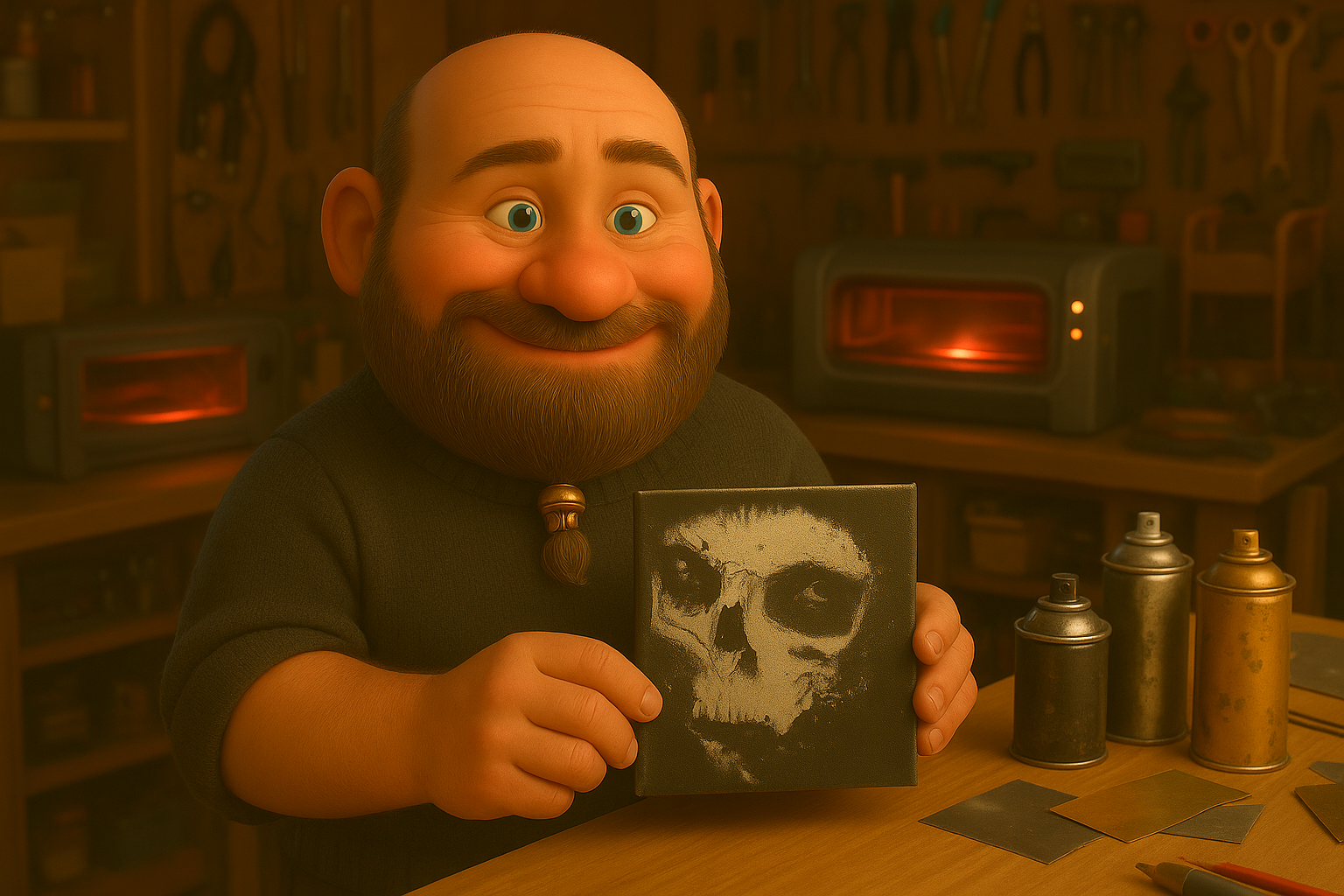 GrundidĂ©en er simpel: du maler et lĂŠrred i lag af farver, og laseren âskrĂŠllerâ lagene vĂŠk igen og afslĂžrer nuancerne i motivet. Ved at bruge sorte, grĂ„ og metalliske farver kan man skabe flotte grĂ„toner, helt uden printer â kun med maling og laserens lys.
