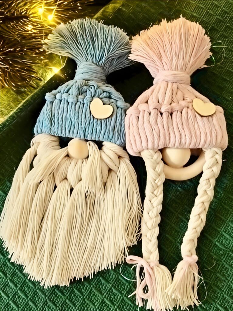 Nogle gange laver jeg også direkte dele til hendes macramé-projekter – små udsmykninger, der kan flettes med ind i arbejdet.
