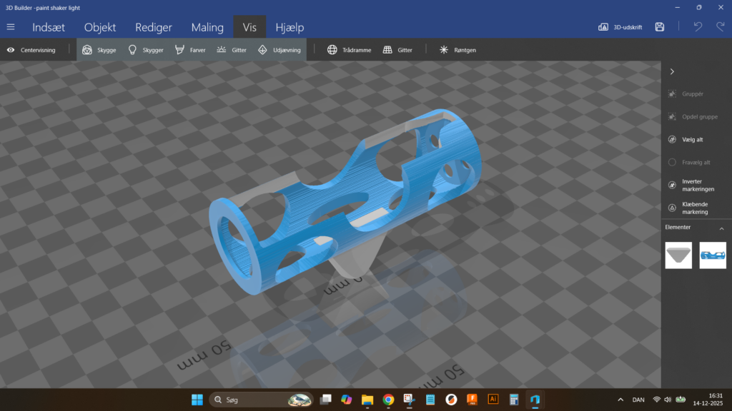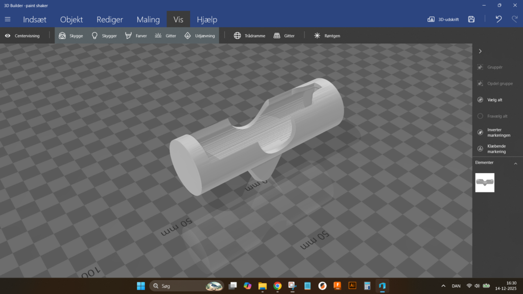 Til gengÊld kunne jeg genbruge den del af modellen, der monteres direkte pÄ tandbÞrsten. BevÊgelsen fra tandbÞrstens mekanik egner sig nemlig langt bedre til en horisontal holder end en vertikal. PÄ den mÄde fÄr malingen mere bevÊgelse, og rysteeffekten bliver markant bedre.