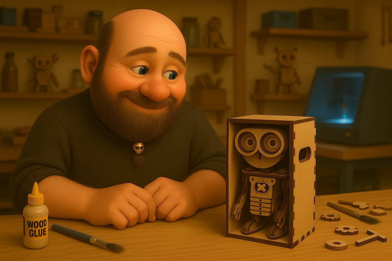 Derfor begyndte jeg at lave små laserskårne robotter som afskedsgave, når de har gennemført deres uddannelsesforløb. De er blevet lidt af et symbol på det, vi arbejder med: nysgerrighed, teknologi og skaberglæde 💡